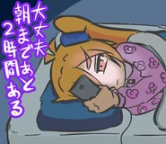 Una representación popular de ella es que siempre está enviando mensajes desde su teléfono celular o, básicamente, está holgazaneando. Su creador confirma que tiene un disgusto por los otakus.